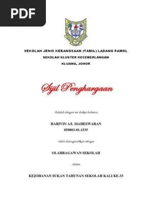 Kejohanan sukan massa wilayah sabah 2010 kolej komuniti tawau sabah kementerian pengajian tinggi . Template sijil sijil penyertaan dengan ini diperakui bahawa lingesswari a p . Contoh sijil penghargaan dan boleh diedit. Sijil penghargaan dengan ini diakui bahawa telah memberi sumbangan dan bakti dalam menjayakan kem sukan sekolah peringkat sk permas jaya 4 anjuran unit… Sijil penghargaan dengan ini disahkan bahawa.